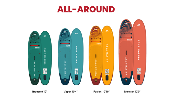Základní řada ALL-AROUND je vhodná pro všechny, kteří mají zájem o snadné pádlování a prioritou je především velká stabilita, velká nosnost a nízká váha. Nádherné a designově skvěle zpracované plováky jsou vyrobeny technologií DROP-STITCH LIGHT. Jsou opravdu velmi lehké, až to člověka vzhledem k jejich velikosti překvapí.