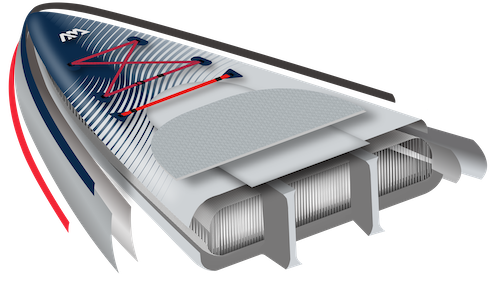 Řez dvoukomorovou konstrukcí paddleboardu Aqua Marina HYPER 12'6"