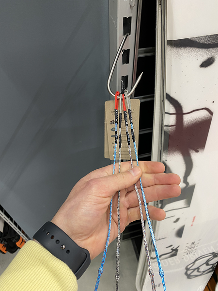 2. Všechny lajny zahákneme na karabinu leashe nebo hřebík / háček.