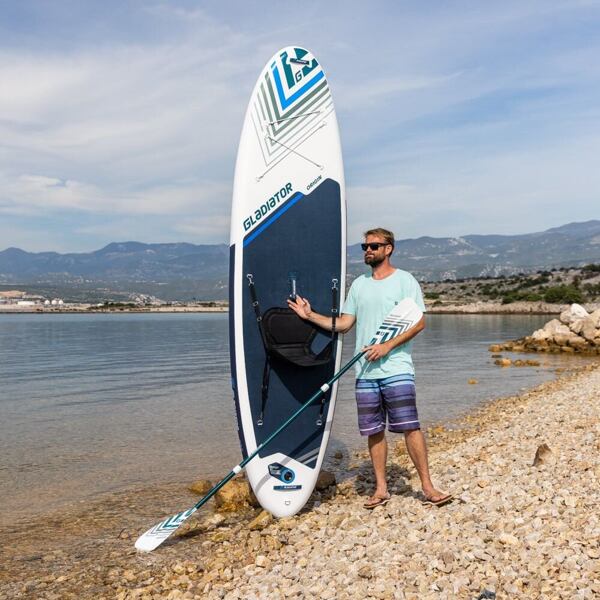 Gladiator Origin 10'8" Combo je nafukovací SUP, který nabízí skvělou hodnotu za rozumné peníze. V základní sadě obsahuje vše včetně kajakové sedačky a pádla.