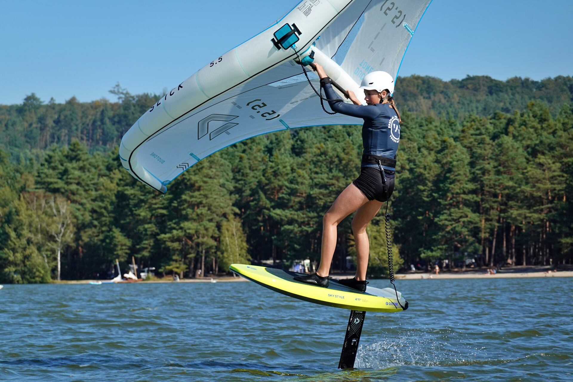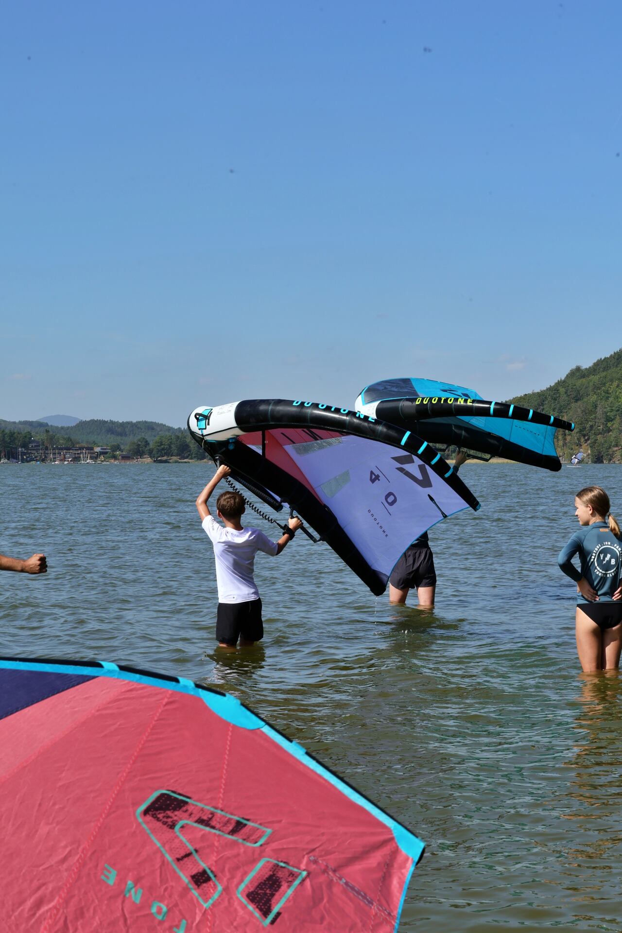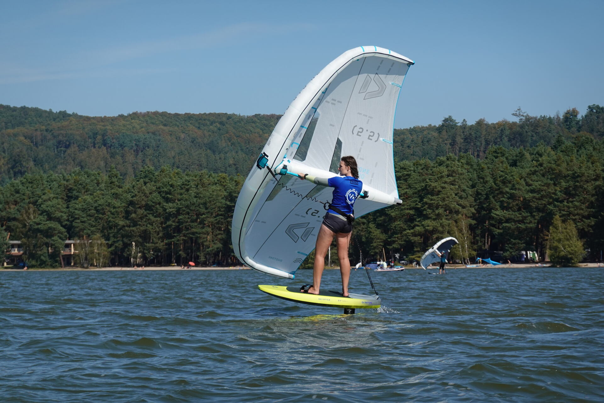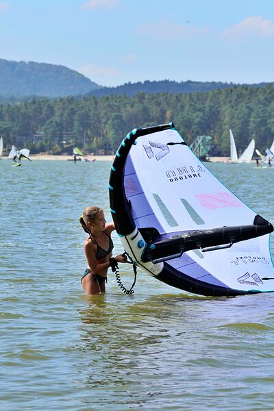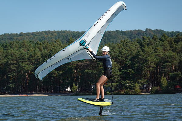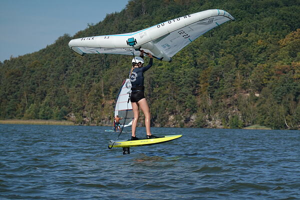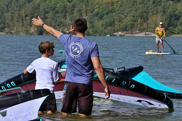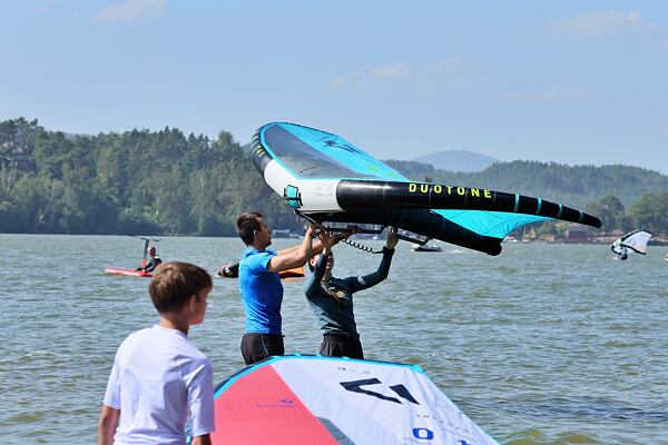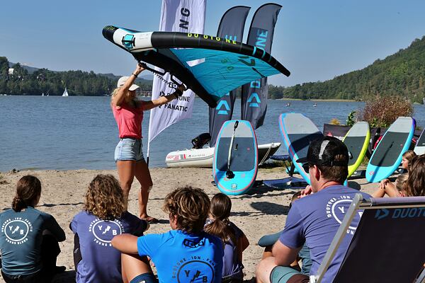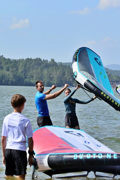 Hlavní lákadlem a zástupcem za Duotone byla Paula Novotná, kterou jistě většina z vás zná. Nejlepší česká wingfoilerka, výherkyně světového poháru jak ve freestyle, tak slalom disciplíně. Dalším instruktoři byli Jirka Nouza – Certifikovaný instruktor wingfoilingu IWO, Terka Mezerová – Jedna z nejlepších českých wingfoilerek. Filip Zima – Instruktor z F4 školy a Marek Potštýnský certifikovaný trenér.