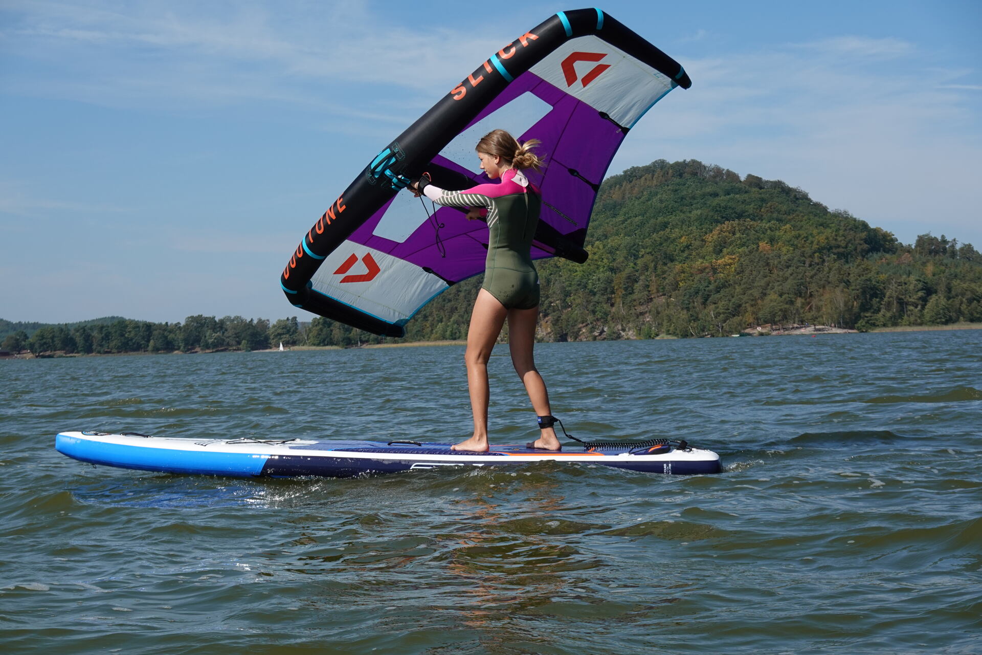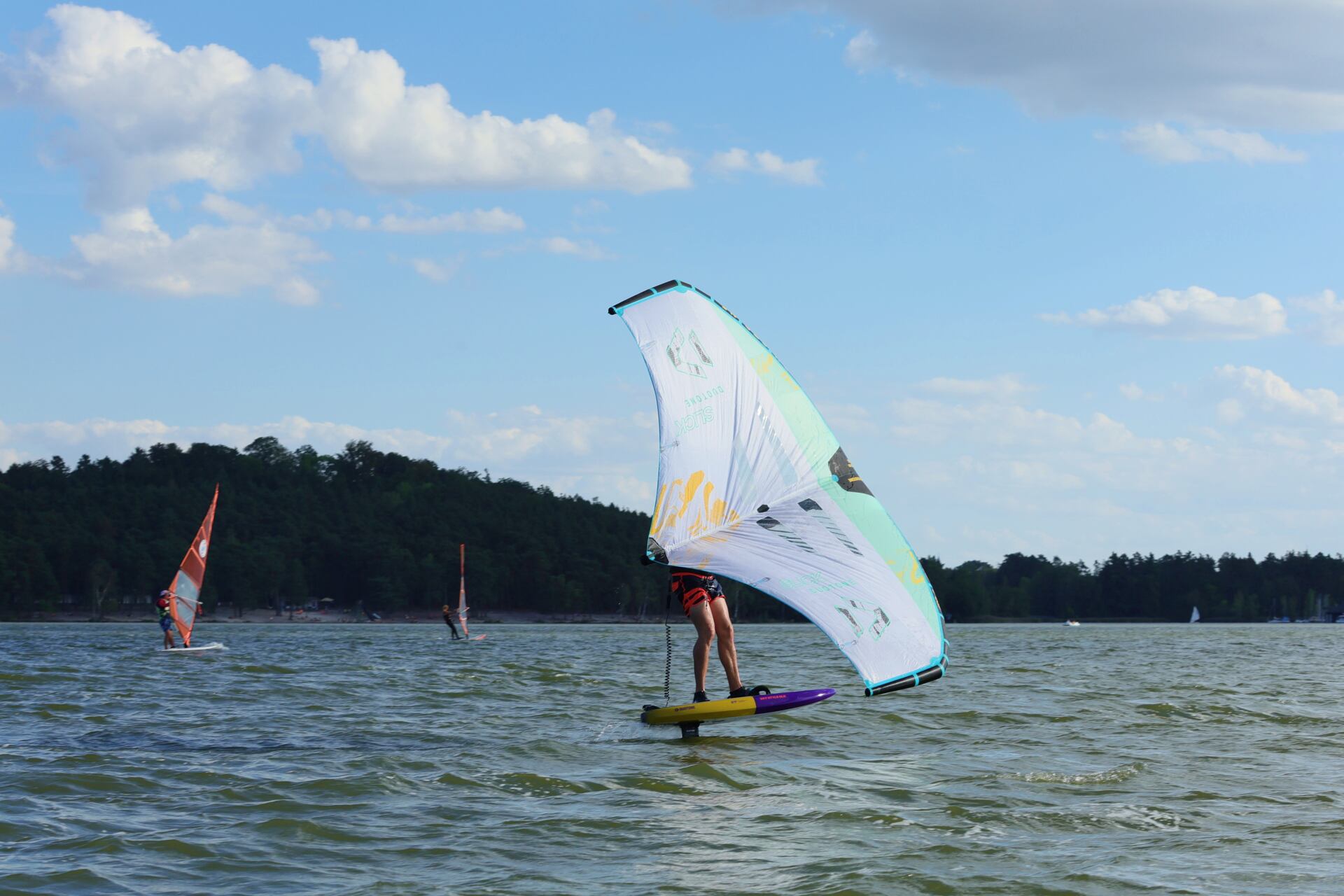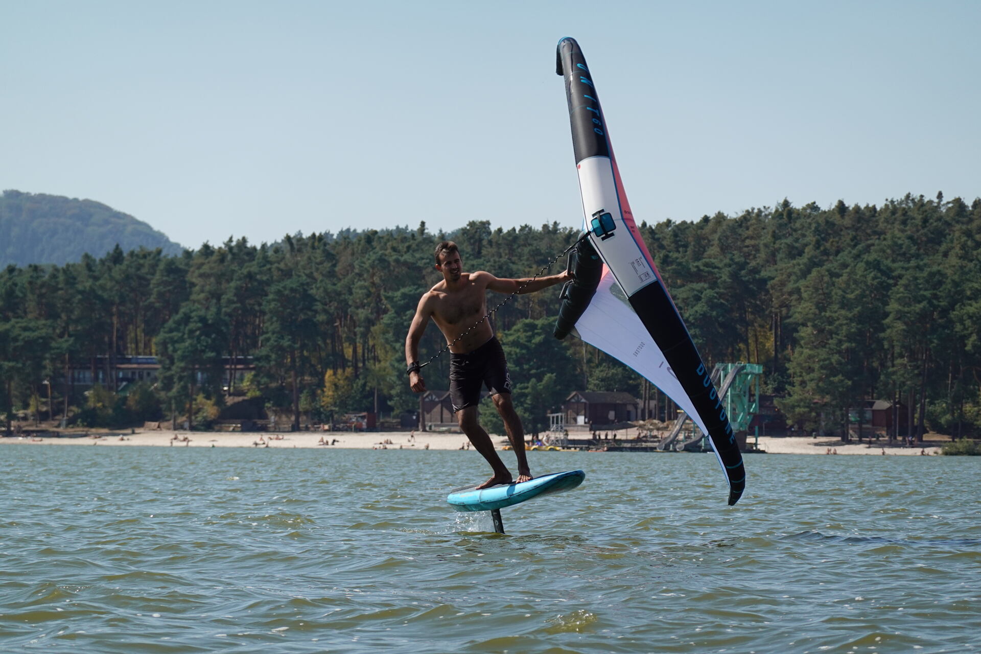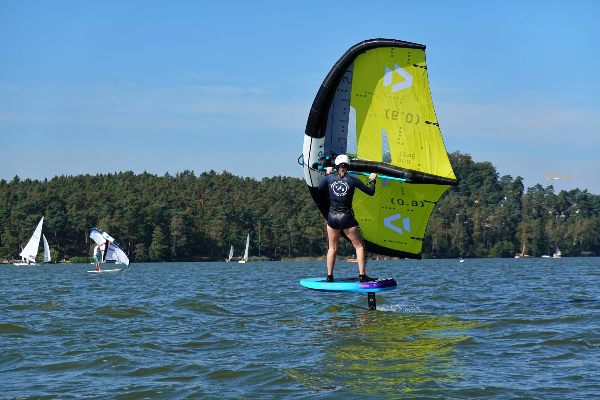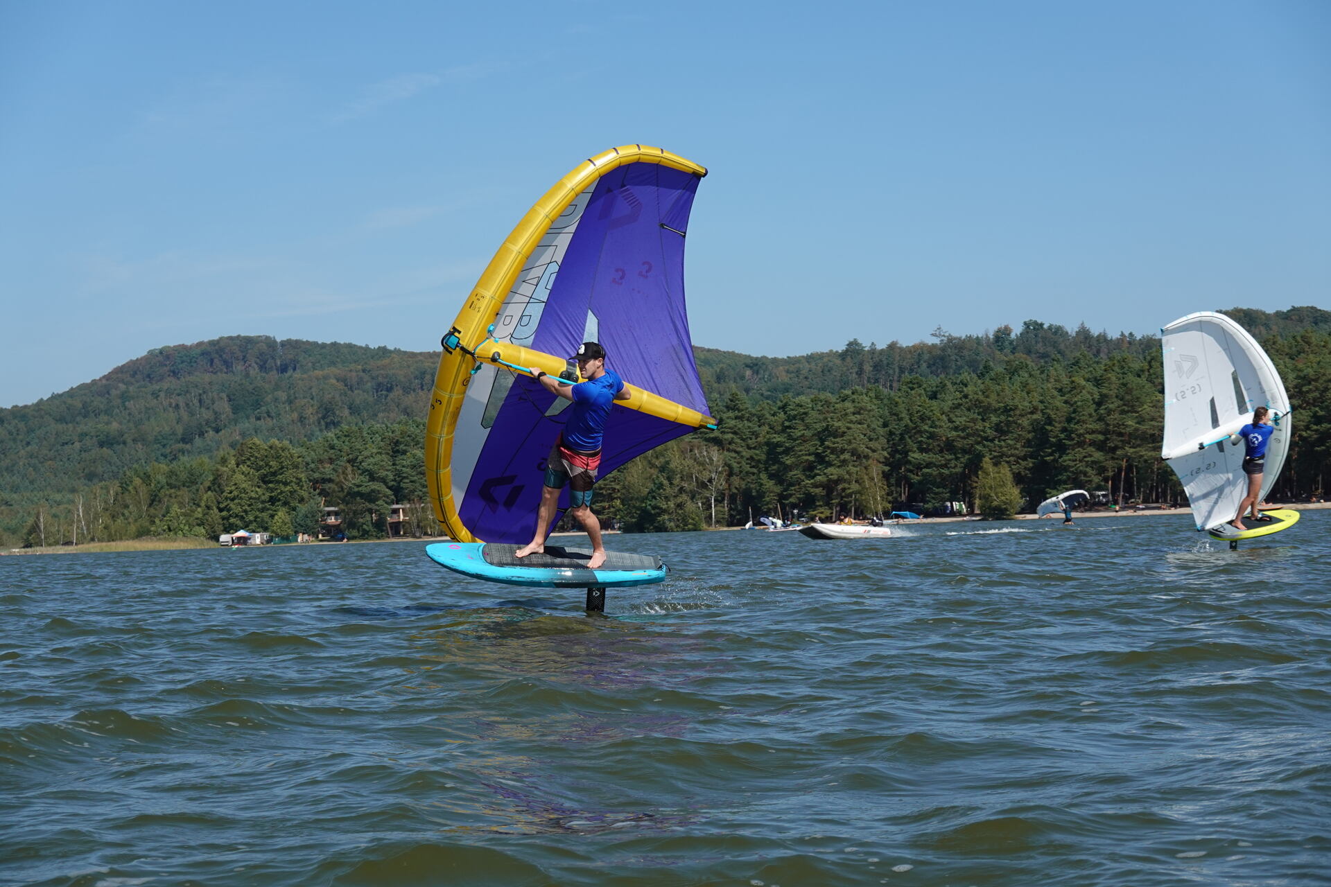 Hlavní lákadlem a zástupcem za Duotone byla Paula Novotná, kterou jistě většina z vás zná. Nejlepší česká wingfoilerka, výherkyně světového poháru jak ve freestyle, tak slalom disciplíně. Dalším instruktoři byli Jirka Nouza – Certifikovaný instruktor wingfoilingu IWO, Terka Mezerová – Jedna z nejlepších českých wingfoilerek. Filip Zima – Instruktor z F4 školy a Marek Potštýnský certifikovaný trenér.