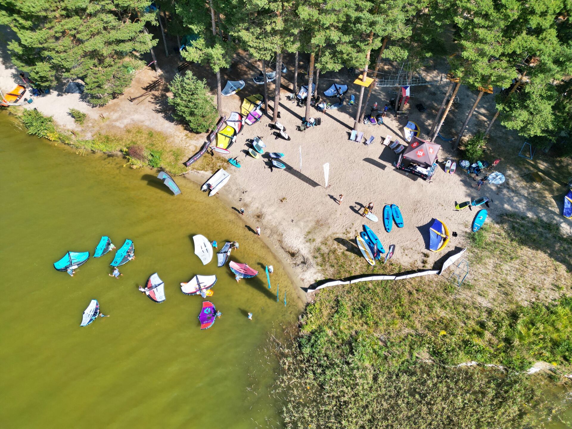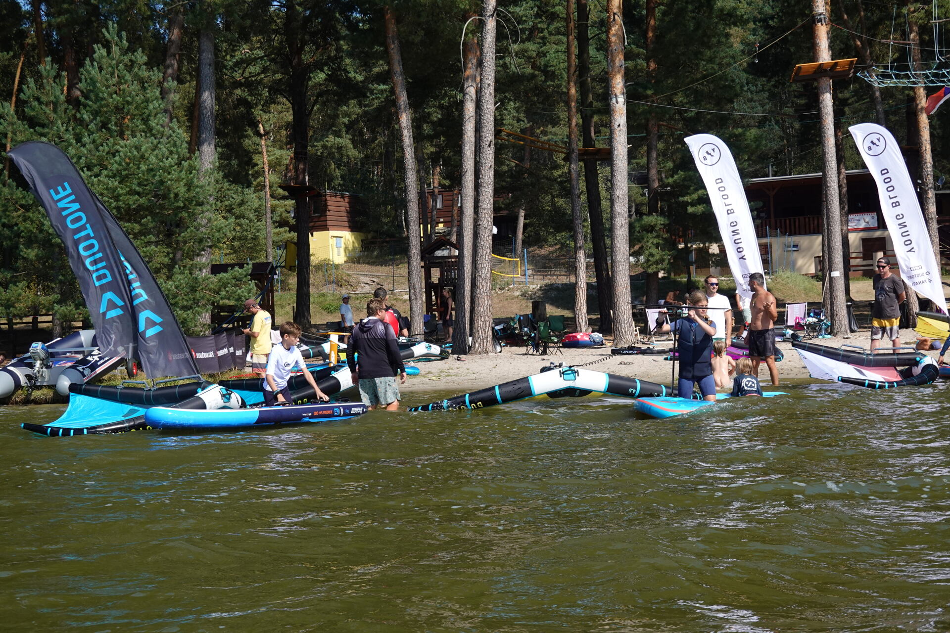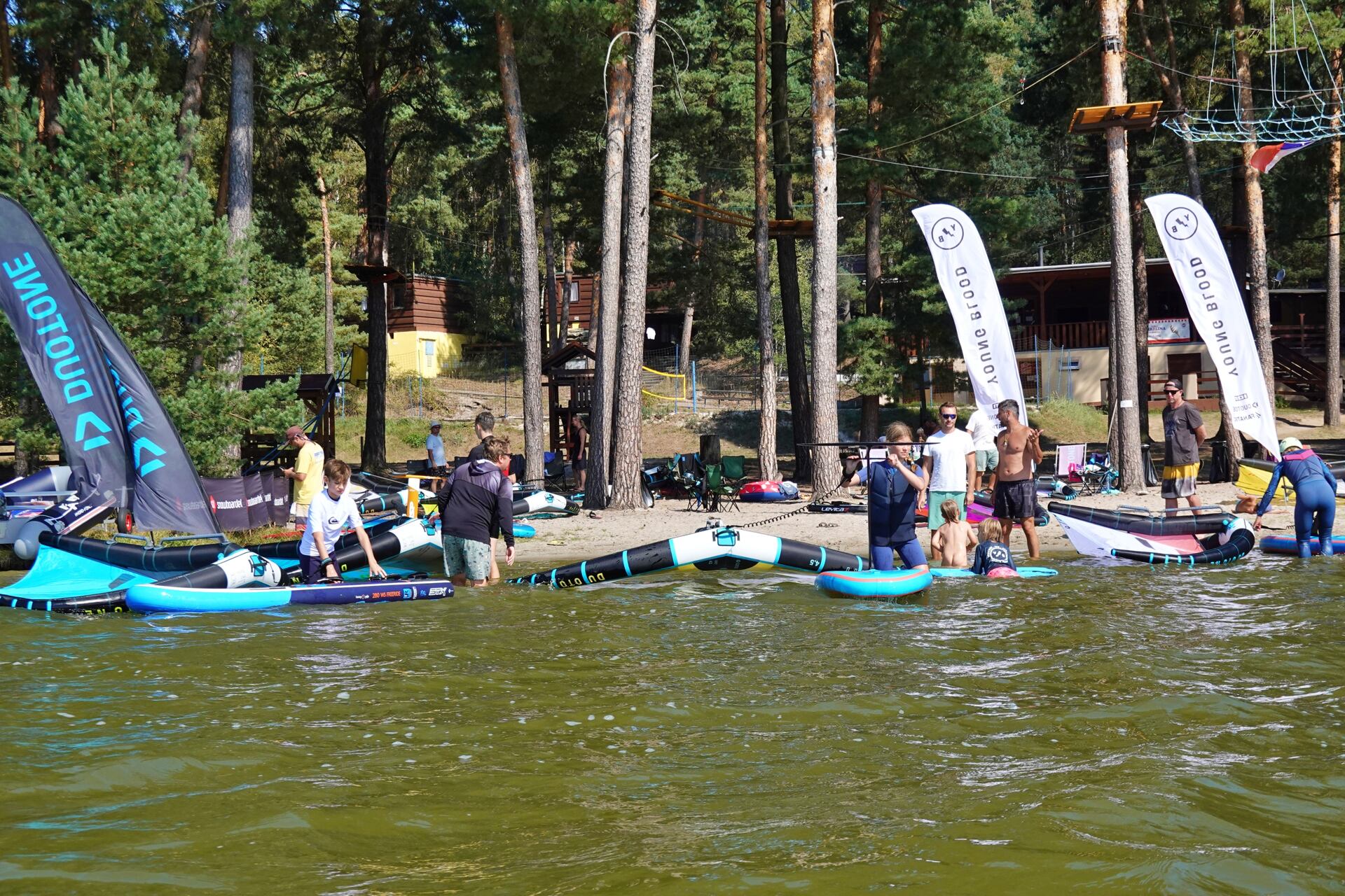 První YBC se konal na Máchově jezeře, ač původní plán byl kemp pořádat na Lipně v kempu Jestřábí 1, kde jsme měli vytvořené perfektní zázemí, tak bohužel nám nepřála předpověď a kemp se na poslední chvíli musel přesunout právě na zmíněné Máchovo jezero. Jak se nakonec ukázalo, tak větrně to byla super volba, foukalo nám oba dny, tedy sobotu i neděli se skvělýma letníma teplotama a sluníčkem. Vítr sice nebyl nejsilnější, ale byl vhodný pro všechny účastníky, jak pro začátečníky, tak i pro pokročilé, kteří jezdili boardy od 55l a wingy okolo 5,0 – 6,0 oba dny. Nakonec se sešlo 15 dětí ve věku od 9 do 16 let a z toho bylo 9 holek. O děti se staralo 5 instruktorů, kteří mají dost zkušeností jak s učením začátečníků, tak i pokročilých.
