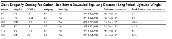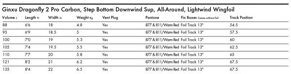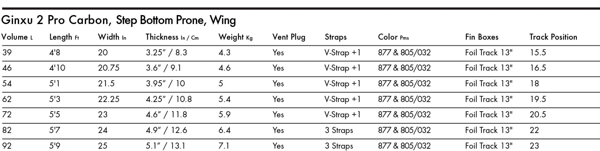 - Ginxu 2: Druhá generace tohoto modelu přináší vylepšenou rovnováhu a snadnější odtrhnutí z vodní hladiny díky optimalizovanému "Step Bottom" tvaru dna.
