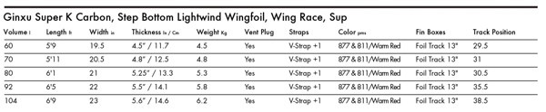 - Ginxu Super K: Tento plovák kombinuje dlouhý a úzký tvar s patentovaným "Step Bottom" designem pro rychlé sklouznutí a brzký rozjezd.