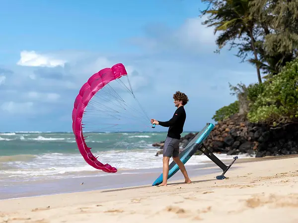 Finn: Ovládání je u Parawingu klíčové. Vyvinuli jsme ergonomickou tyč (bar), inspirovanou úchyty z Duotone wingů. Je zaoblená, pohodlná a navržená tak, aby se do ní nezachytávaly šňůry. Středové liny se dají posouvat dopředu nebo dozadu podle stylu jízdy.