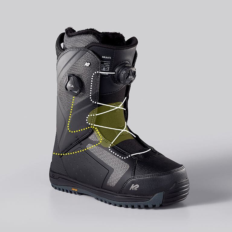 S technologií BOA botu stahuje systém integrovaných lanek. Během pár otočení kolečkem tak máte boty utažené, povolit se dají jediným pohybem během necelé vteřiny. U špičkových modelů je možné se setkat i z tzv. Double či Dual BOA, kdy je možné stáhnout botu ve více, na sobě nezávislých, zónách. Jedinným mínusem toho systému je o něco vyšší pořizovací cena. Podrobného rádce, který vám pomůže s výběrem snowboardových bot naleznetena následujícím odkazu.