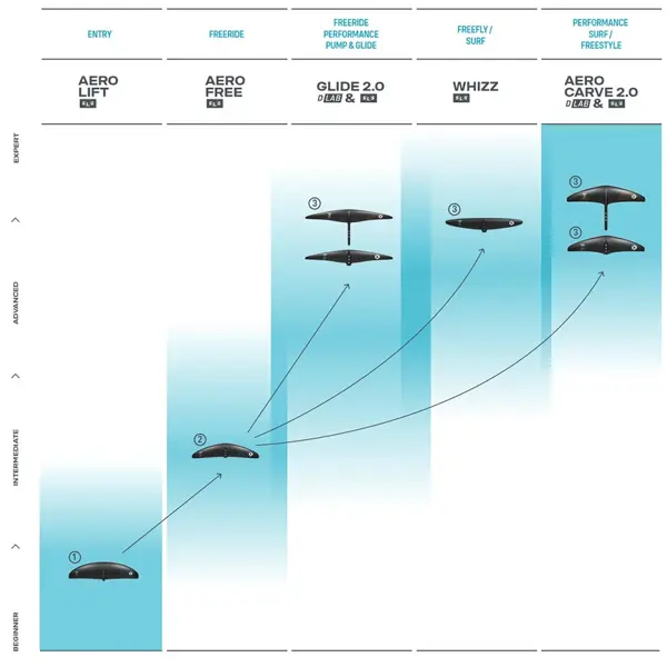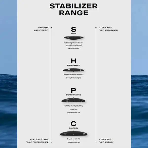 Zadní křídlo je vždy menší a ovlivňuje stabilitu při levitaci. Jeho rozměr (u foilů prodávaných jako kompletní set) bývá vhodně zvolen v závislosti na velikosti předního křídla. Pokud chcete výrazně změnit jízdní vlastnosti bez pořízení nového předního křídla, vyplatí se vyměnit právě zadní křídlo.