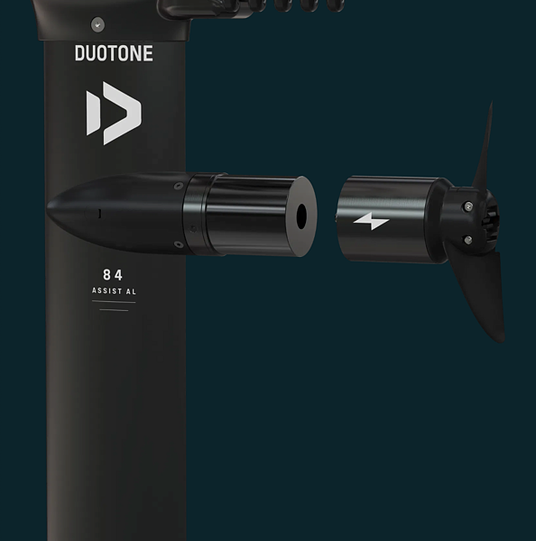 u Duotone Foil Assist je motor a kabely jsou plně integrované do mastu a baterie jsou v eHarnessu, což znamená nižší odpor a lepší ovladatelnost bez větších baterií na plováku. Duotone koncept dává přednost sadné ovladatelnosti a minimalizaci odporu, což ocení jezdci zaměření na sportovní výkon a cit pro pumpování a surfování.