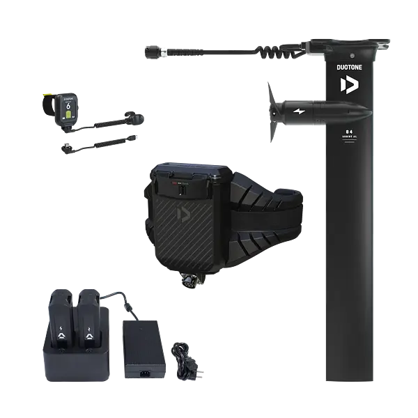 Duotone Electric Foil Assist Set AL je kompletní plug-and-play systém profoiling. Poskytuje dodatečný tah přesně ve chvíli, kdy ho potřebuješ, a výrazně usnadňuje rozjezdy a rozšiřuje možnosti jízdy i v podmínkách kde by člověk nešel na vodu. Využití je jak assistence při rozjezdu pro wingfoiling, tak prone foiling, nebo downwind foiling.