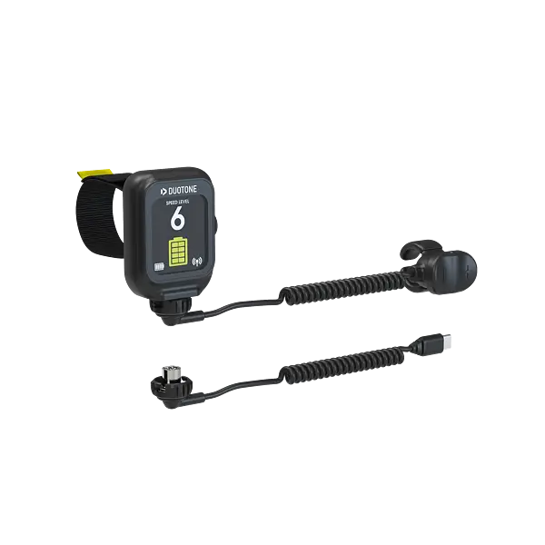 Ovládání probíhá pomocí prstového ovladače a hodinkám, který umožňuje plynulou regulaci výkonu bez nutnosti pustit pádlo, wing , prkno. Ovládání je intuitivní a navržené pro maximální bezpečnost a komfort během jízdy.