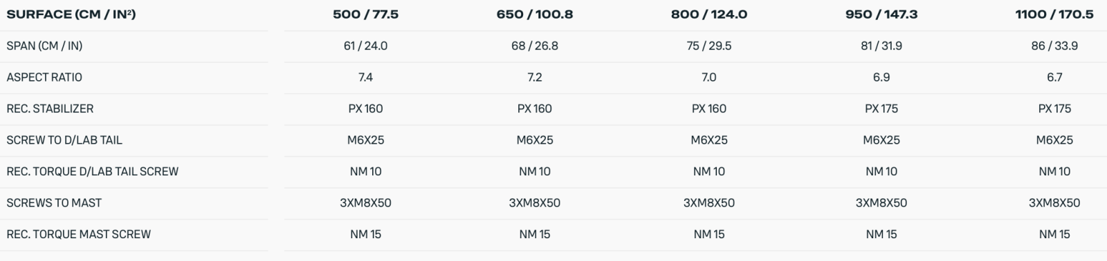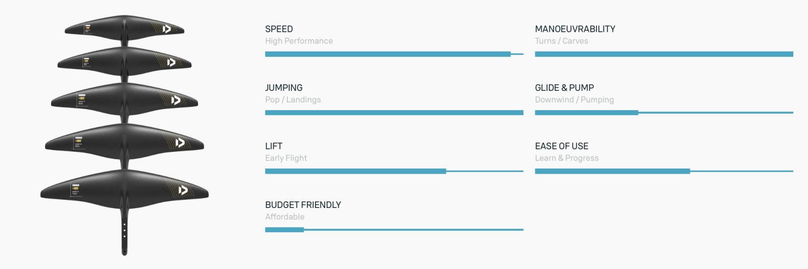 Optimalizované profily: Každá velikost foilu má specificky navržený profil pro dosažení maximálního výkonu.