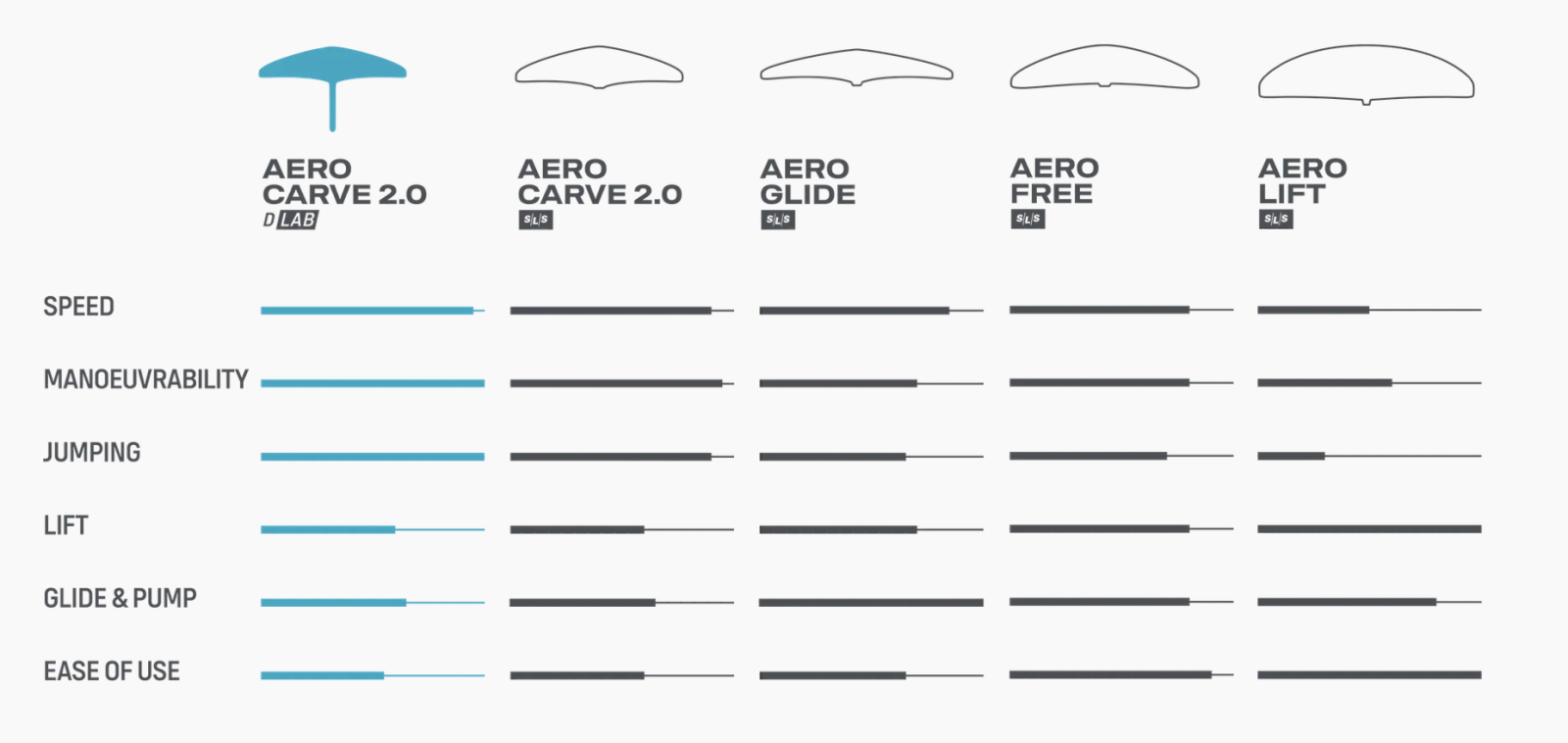 AERO CARVE 2.0 D/LAB je tak trochu malá revoluce, proti původnímu carvu od Fanatic se carve 2.0 totálně předělal. Zvětšilo se aspect ratio, zmenšil se profil, změnilo se zaoblení křídla. Nový Carve 2.0 má lepší glide, je rychlejší, manévrovatelnost se také posunula při zachování kontroly. Verze D/LAB má integrovanou fuselage v přední části. Tzn. již žádné šrouby na předním křídle. Verze D/LAB je ještě tenčí s menším Aspect ratio naž verze SLS a tím pádem i rychlejší. Pokud chcete ultimátní foil od Duotone, již dál nehledejte.