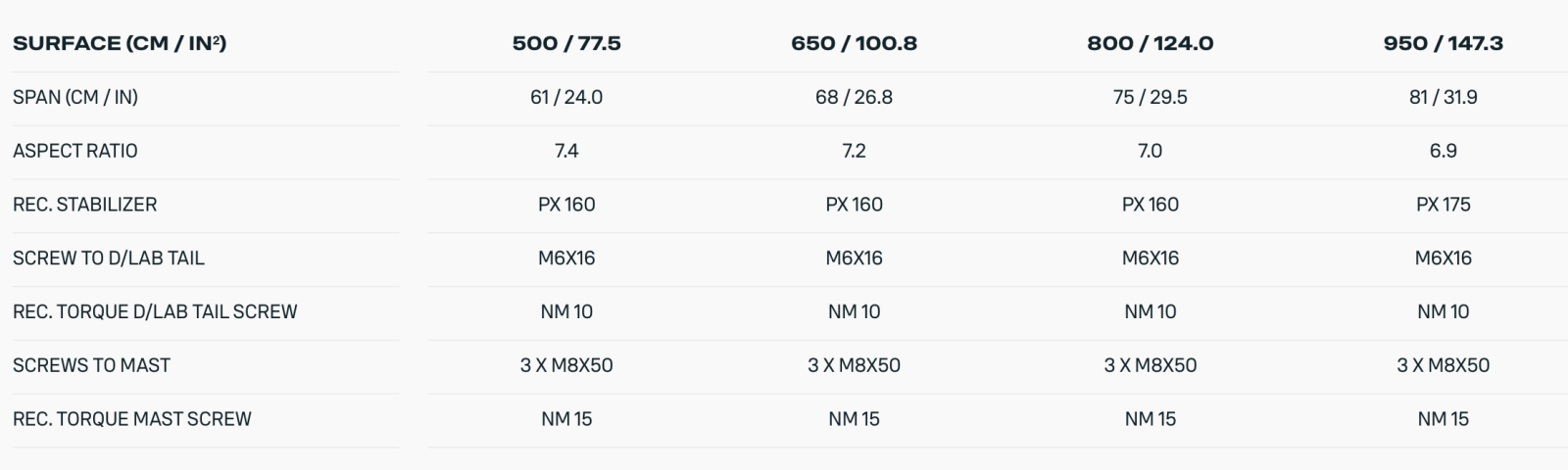 Optimalizované profily: Každá velikost foilu má specificky navržený profil pro dosažení maximálního výkonu.