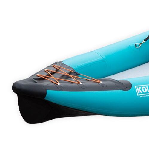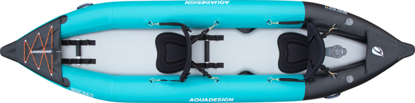 Nafukovací kajak Aquadesign Koloa 360 je univerzální turistický kajak pro dvě osoby. Lze využít jako plážový, mořský, jezerní nebo říční kajak do třídy WWIII. Ideální pro dvě osoby, tento nafukovací kajak má 10 cm silné dno Dropstitch, které lze nafouknout až na tlak 10 PSI, tedy ultra pevné dno. Na dně nalezneme v zadní části 4 odtokové ventily a místo na dvě vyndavací Slide-in ploutvičky.