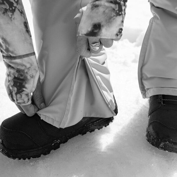 Tvar nohavic je přizpůsoben jízdě na snowboardu.