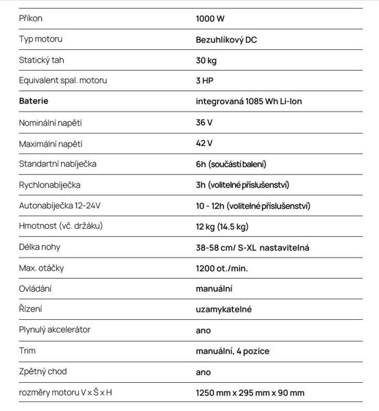 - rozměry motoru: 1250 mm x 295 mm x 90 mm
