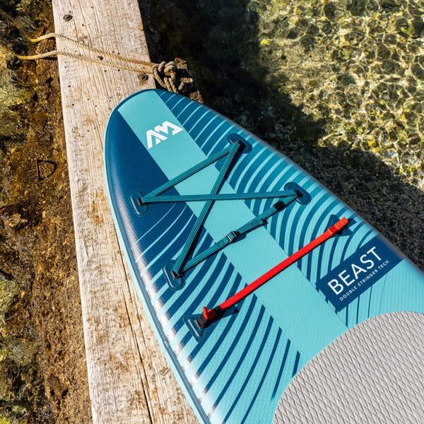 Die neue ALL-AROUND ADVANCED Serie zeichnet sich durch die überarbeitete Form des Paddleboards und die verbesserte Technologie aus. Das Modell BEAST ist mit der DOUBLE STRINGER TECHNOLOGY ausgestattet und mit zwei längs verlaufenden PVC-Streifen verstärkt, was für höhere Stabilität und somit ein besseres Ansprechverhalten des Boards sorgt. Im Vergleich zur ALL-AROUND Serie ist es etwas schlanker, wodurch es schneller gleitet. Die Stabilität des Boards ist weiterhin sehr gut, sodass es sich sowohl für fortgeschrittene Paddler als auch für absolute Anfänger eignet.