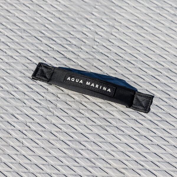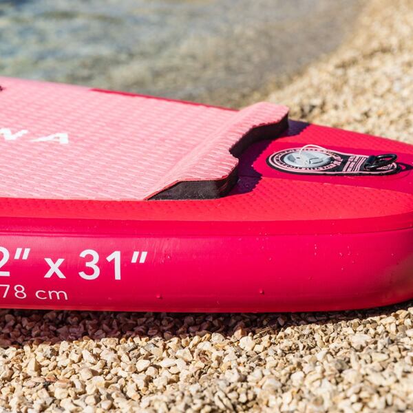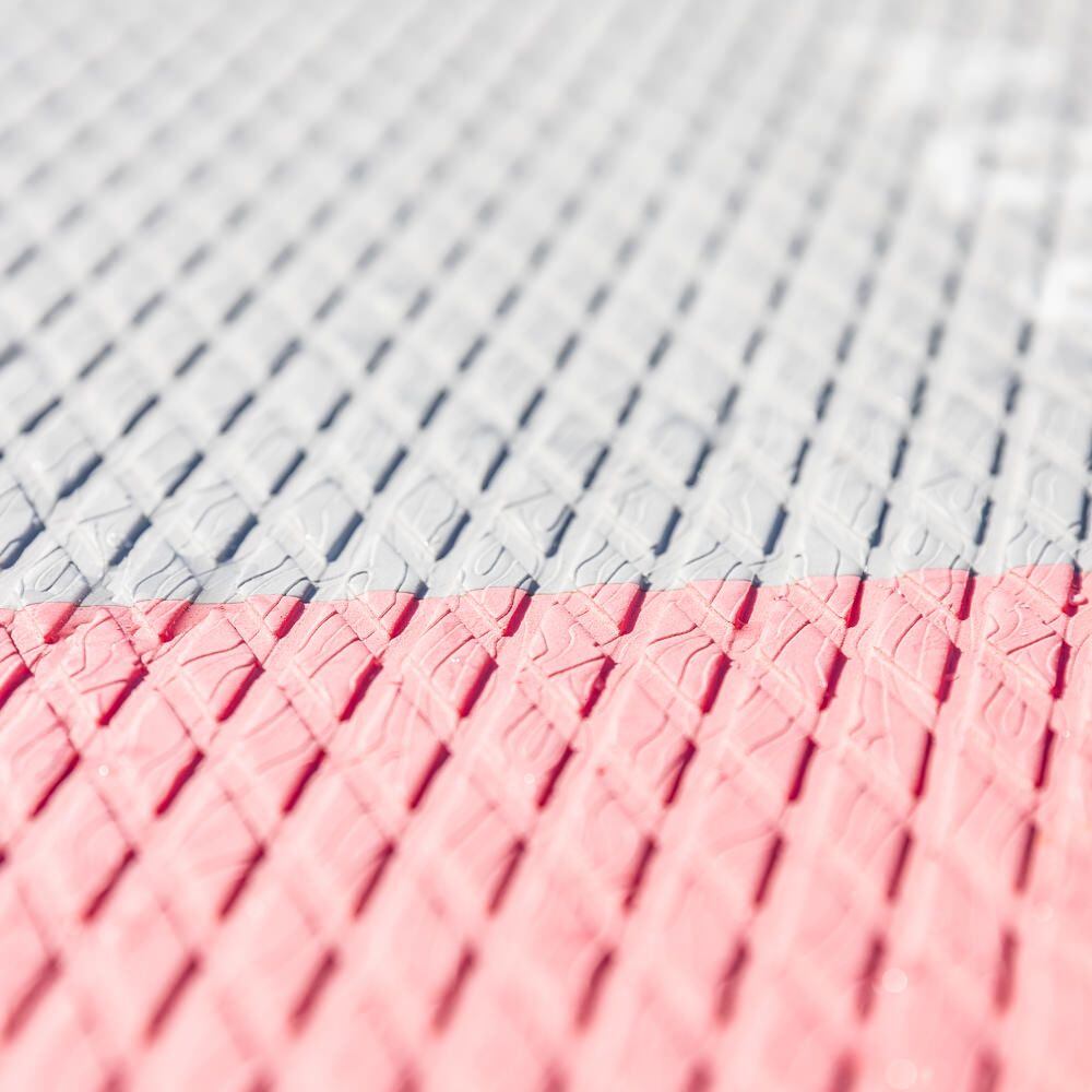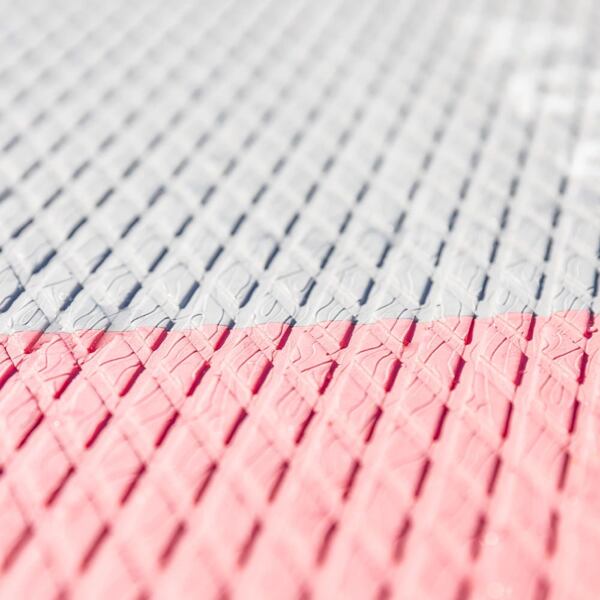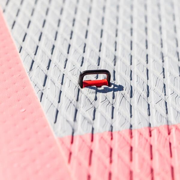 Auf dem Deck des Paddleboards befindet sich ein gefrästes, rutschfestes Pad mit DIAMANT-Muster. Dank seiner geschlossenen Struktur nimmt es keinen Schmutz auf. Am hinteren Ende des Pads befindet sich eine erhöhte Kante, die das hintere Bein bei Kurven stützt. Auf dem Deck finden Sie außerdem einen zentralen Griff und D-Ringe zur Befestigung eines Kajaksitzes. Neu ist auch das System zur Befestigung von persönlichen Gegenständen am Bug. Es besteht aus flachen RED STRAP™ -Gummibändern, die auf einer größeren Fläche neu gefaltet sind. Das sieht nicht nur gut aus, sondern ist auch sehr funktional.