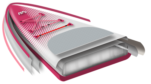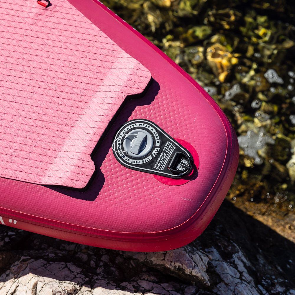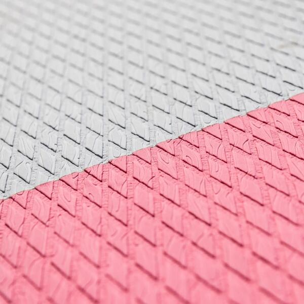 Na palubě paddleboardu nalezneme nový systém uchycení nákladu. Je vytvořen s plochých gumiček RED STRAP™ poskládaných v novém tvaru na větší ploše, což nejen skvěle vypadá, ale je také zároveň velmi funkční. Frézovaný neklouzavý pad s DIAMOND vzorem, který má uzavřenou strukturu, aby nepřijímal nečistoty. V zadní části padu je zvýšená hrana Kick-pad pro oporu zadní nohy při otočkách.