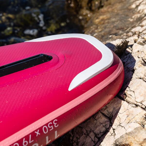 Coral Touring má unikátní tvar s širokým stabilním středem a protáhlou špičkou, která skvěle rozráží vodu a pomáhá při jízdě držet přímí směr. Lehce zvednutá špička se hodí pro jízdu na klidné vodě, na řece i v menších vlnách na moři. Pro ještě lepší skluz má Coral speciální odtokovou hranu, která umožňuje hladší proudění vody a zamezuje vytváření turbulencí za zádí paddleboardu, které zpomalují jízdu.