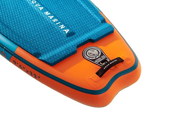 Abseits von Flüssen eignet es sich auch als universelles Freizeit-SUP-Board auf ruhigeren Gewässern. Der Vorteil aufblasbarer SUP-Boards liegt vor allem in ihrer Kompaktheit und dem einfachen Transport. SUP-Board und Zubehör lassen sich bequem in einem Rucksack verstauen und auf dem Rücken tragen. AQUA MARINA SUP-Boards verfügen über eine schwammartige Innenstruktur, die bei einem Aufpumpdruck von 15–18 PSI formstabil und sehr steif ist. Der Hersteller empfiehlt einen Druck von 15 PSI, maximal sind 18 PSI zulässig.