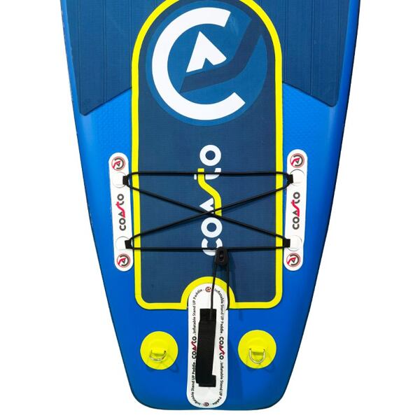 Každý stand up paddle plovák Coasto obsahuje v praktickém batohu ruční pumpu, která pohodlně zvládne tlak 15PSI pro optimální nafouknutí paddleboardu. Středovou vyndavací ploutev pro lepší vedení paddleboardu na vodní hladině. Alu třídílné pádlo s možností libovolně nastavit délku pádla pro různé výšky paddleboardisty. Leash „šňůru opředenou pvc hadicí“ pro upevnění paddleboardu k noze. Leash zamezí nedobrovolné odplutí paddleboardu a ušetří vám tak nepříjemné plavání za plovákem.
