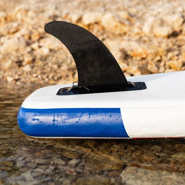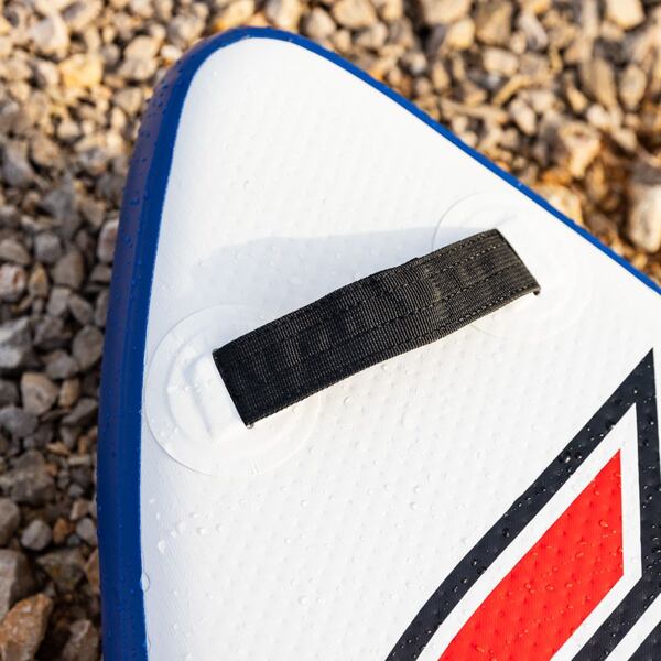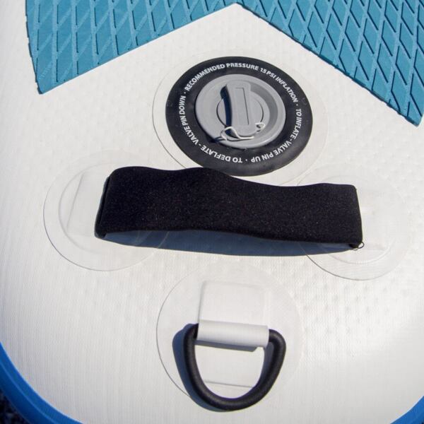 Paluba paddleboardu je potažena protiskluzovou EVA pěnou, na přídi najdeme flexibilní lanko, které slouží k uchycení osobních věcí. Plovák je vybaven ocelovými očky, tzv. D-ringy. Ty slouží k připevnění paddleboardového příslušenství, jako je například kajaková sedačka (není součástí základního balení). Výhodou nafukovacích paddleboardů je primárně jejich skladnost a nenáročnost na přepravu. Paddleboard i s veškerým příslušenstvím zabalíte do transportního batohu, který unesete na zádech a který se pohodlně vejde do kufru od auta, šatníku, či pod postel.