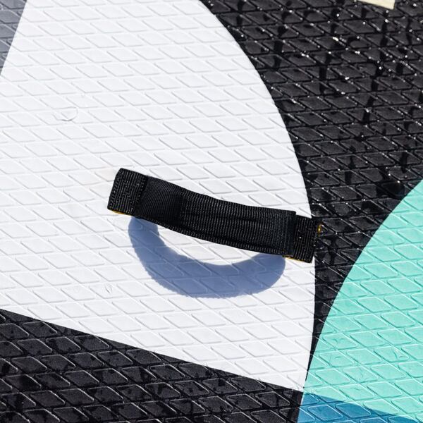 - Das Board verfügt über Griffe am Bug, Heck und in der Mitte, sodass der Benutzer das Paddleboard sowohl am Ufer als auch im Wasser leicht manövrieren kann.