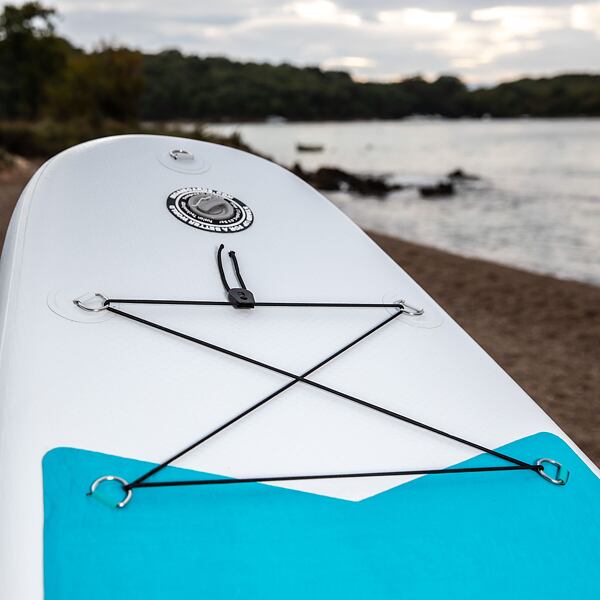 Díky technologii MSL-Fuion (dvouvrstvá bez použití lepidla) je paddleboard velmi tuhý a odolný. Paddleboard je osazen kovovými d-ringy a pružným lanem, pod které lze umístit drobný náklad.