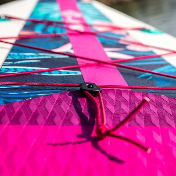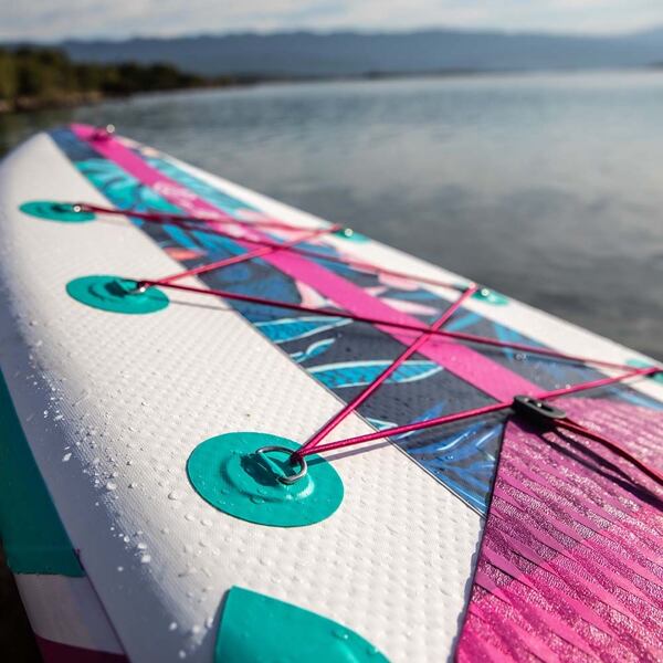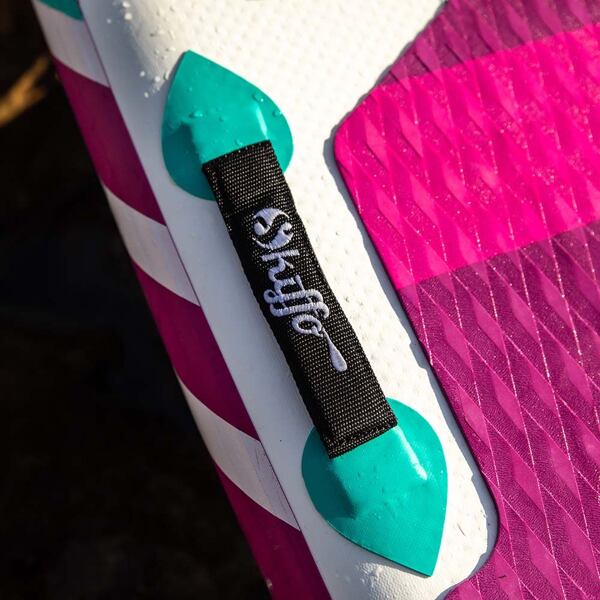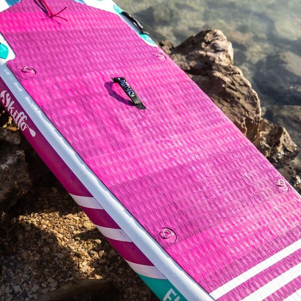 Nafukovací paddleboard ELLE od značky SKIFFO je krásný dámský plovák z kategorie ALLROUND. Plovák má tloušťku 5", šířku 31" a délku 10'4" což z něj dělá univerzální paddleboard pro všestranné použití. Svým tvarem je vhodný i pro delší výlety a je skvělou volbou pro široké spektrum paddleboardistek, od začátečnic až po pokročilé. Díky kovovým D-ringům na palubě je možné upevnit na paddleboard také kajakovou sedačku a užít si tak paddleboard z nové perspektivy. Na palubě nalezneme 3 praktická madla pro pohodlné přenášení a protiskluzovou frézovanou nášlapnou vrstvu, která má velmi příjemný materiál. Paddleboard je vybaven jednou odnímatelnou typu slide-in a dvěma menšími fixními ploutvičkami.