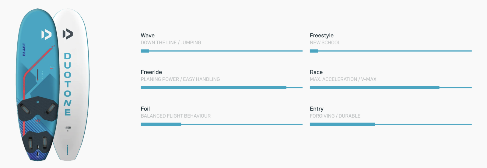 Nová éra windsurfingu s Duotone Blast 2024. Tento revoluční board přináší nekompromisní výkon a inovativní design, který vám umožní doslova letět po vodě. Bez ohledu na to, jestli chcete pouze rychlost, nebo dobrou kontrolu, či adrenalinový zážitek, Blast 2024 je skvělý Freeride/freerace plovák s kterým bude jízda zábava a adrenalin.
