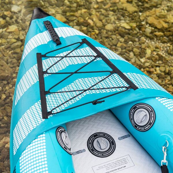 Jedná se o kombinovanou konstrukci s drop-stitch podlážkou, která tvoří pevné a pohodlné dno kajaku. Bočnice jsou nízkotlaké z velmi odolného PVC, takže se nemusíte bát, že jej prorazíte. Na dně nafukovacího kajaku naleznete dva odtokové ventily pro odpouštění přetečené vody. Pohodlné sedačky, vhodně umístěná madla a nízká váha dělají z tohoto kajaku velmi dobrou loď pro všestranné použití.