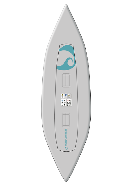 Kajak je vybaven dvěma odnímatelnými flosnami typu slide-in. Jedna na zádi a druhá uprostřed.